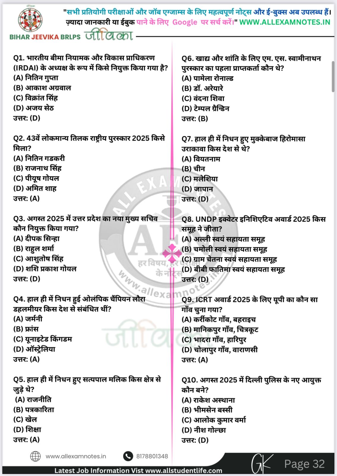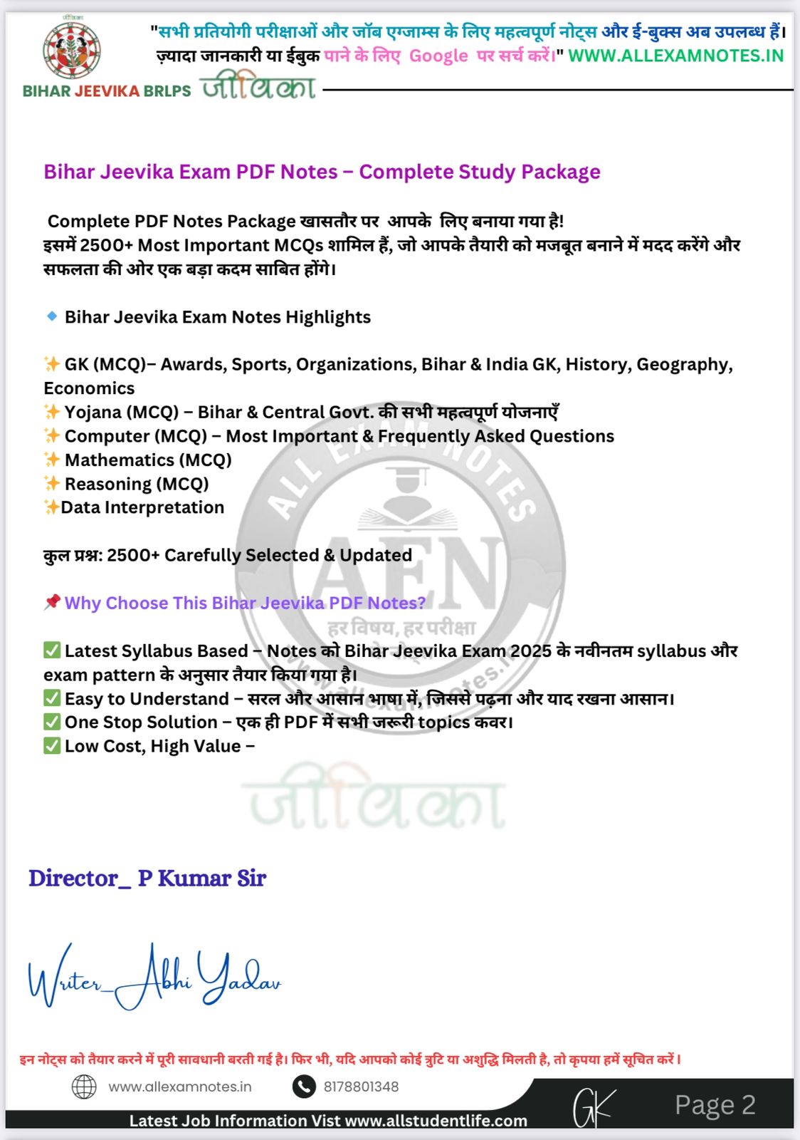 📘 BRLPS बिहार जीविका Exam 2025 E-Book Notes (Hindi Medium)