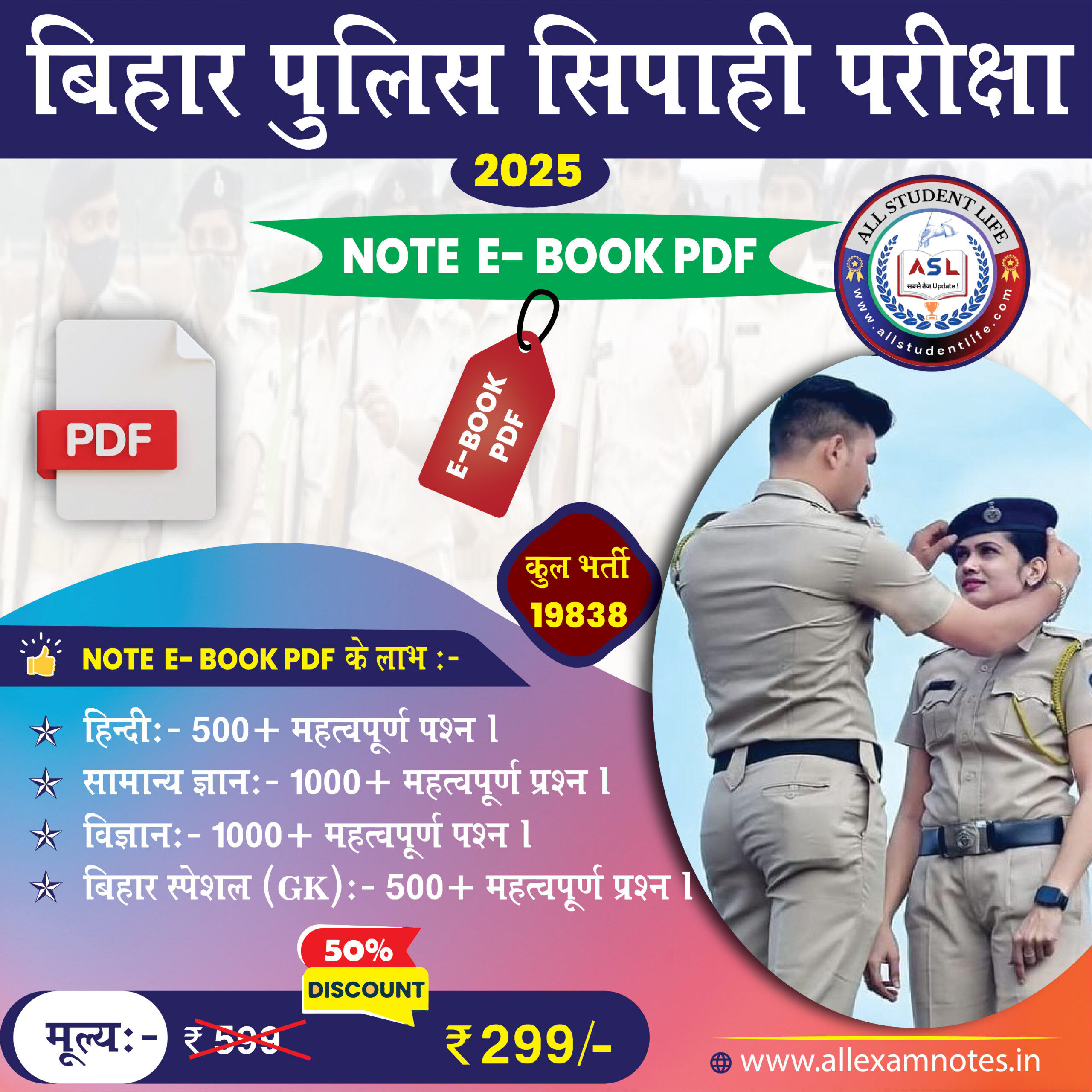 अगर आप Bihar Police Constable Exam 2025 की तैयारी कर रहे हैं, तो सही Study Material आपके सफलता की कुंजी हो सकती है। इस Bihar Police Constable E-Book को विशेषज्ञों द्वारा तैयार किया गया है, जिसमें 3000+ VVI Questions with Answers और Previous Year Questions (PYQ) शामिल हैं। यह Best Study Guide PDF आपके Exam Preparation को एक नई दिशा देगा।